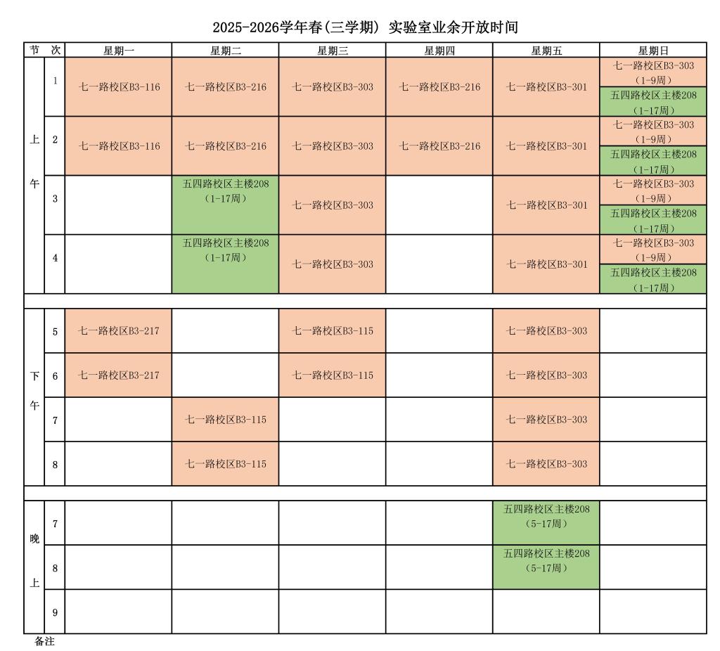 2025-2026学年(春)计算机基础实验室网络自主学习开放时间表